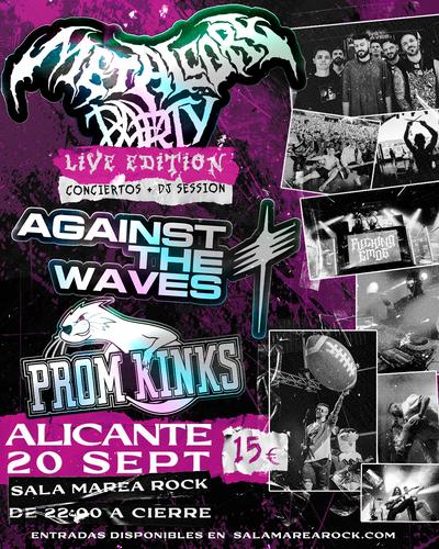 METALCORE PARTY "LIVE EDITION" - Against the Waves + Promkinks + Metalcore Party DJs ¡Alicante! El sábado 20 de septiembre volvemos con la edición más épica hasta la fecha, por primera vez con conciertos en directo en una Metalcore Party y un show especial lleno de sorpresas que no os podéis perder. En la Sala Marearock, y tras su éxito rotundo en Resurrection Fest, contaremos con el metalcore moderno de AGAINST THE WAVES y el mejor Party-core nacional de PROMKINS, además de la actuación de los mejores DJS de la Metalcore Party, que reventarán la sala hasta la hora de cierre. No os perdáis la primera fiesta donde además de actuaciones en directo, podréis escuchar grupos como Bring Me The Horizon, Electric Callboy, Falling in Reverse, Motionless In White, My Chemical Romance, While She Sleeps, Parkway Drive, Sleep Token, Lorna Shore, A Day To Remember, Bad Omens, Pierce The Veil, The Ghost Inside, Asking Alexandria y muchos más! Desde las 22:00h de la noche del sábado 20 de septiembre hasta la hora de cierre en Marearock, Alicante.
