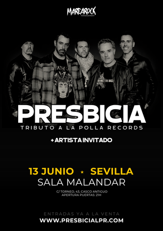 La gira de PRESBICIA (Tributo a La Polla Records) junto a ALGAZARA (Tributo a Reincidentes) aterriza en MADRID para hacerte pasar una noche única. El proyecto PRESBICIA liderado por el actor DANIEL GUZMÁN rinde homenaje desde el corazón a uno de los músicos que más le ha influido en su vida, Evaristo Páramos, dando un extenso repaso a esos temas que aún siguen más presentes y vivos que nunca.